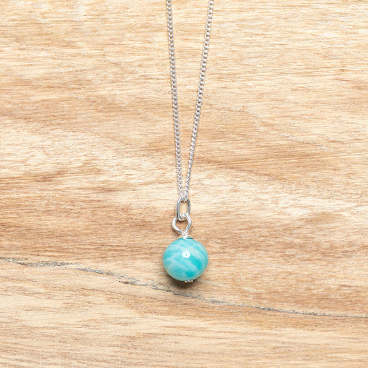 Amazonite Ball Pendant on Sterling Silver Chain