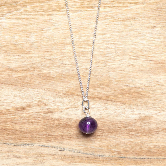 Amethyst Ball Pendant on Sterling Silver Chain