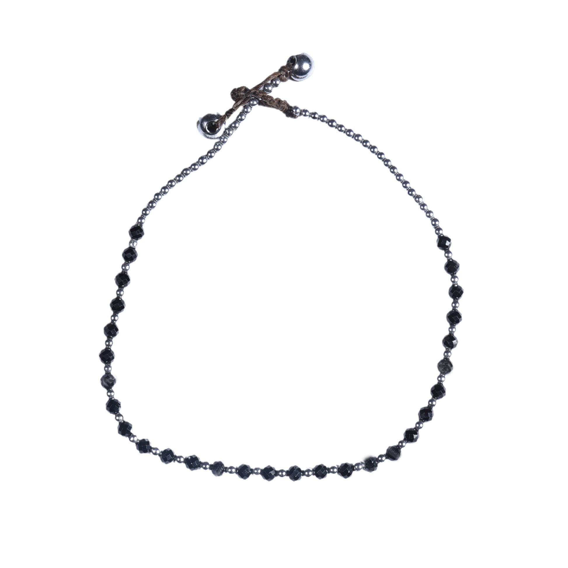 Our Black Spinel Crystal Anklet, is made with real crystals and haematite beads. Black Spinel is believed to address imbalances in the body, letting its energy wash over your body promotes clearer skin complexion.