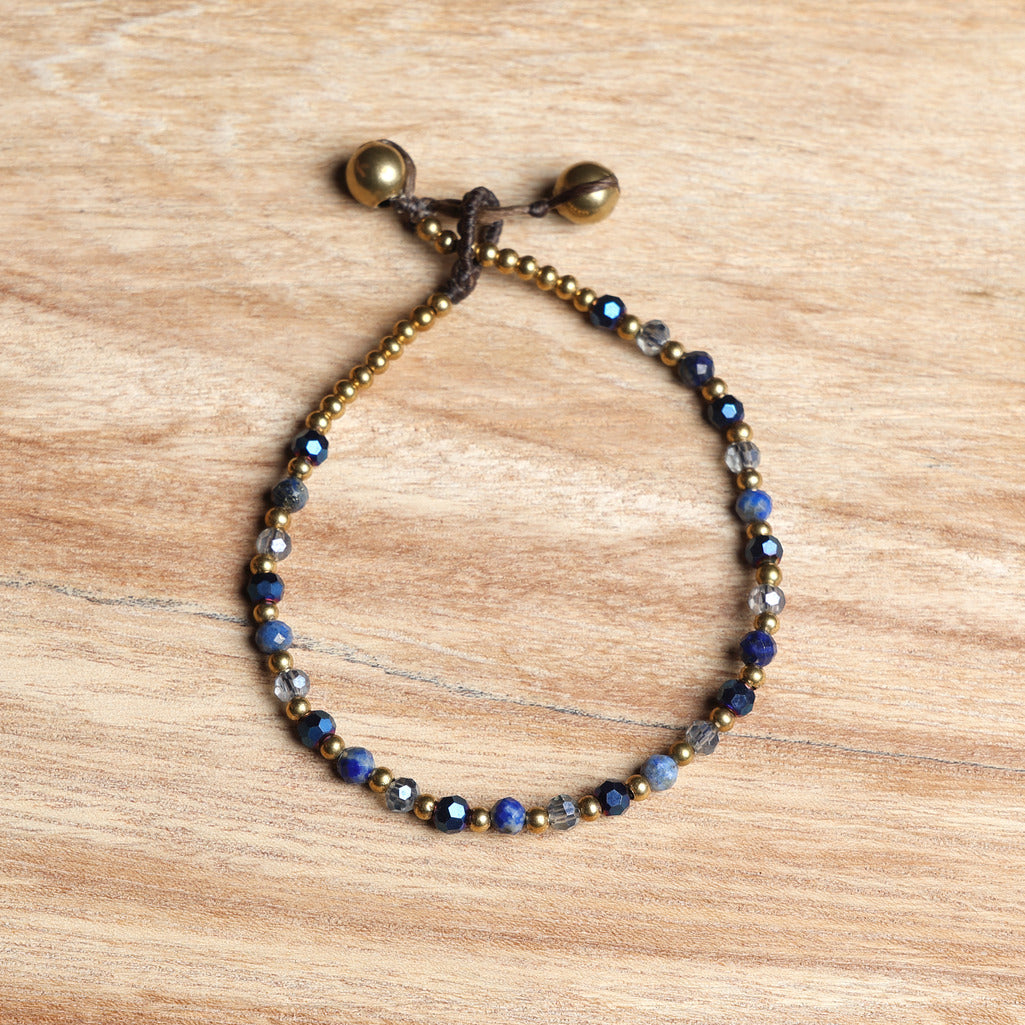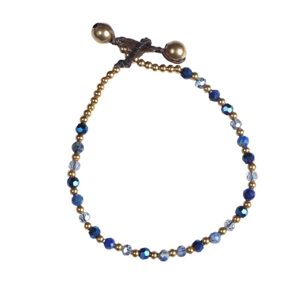 Our Blue Agate Crystal Bracelet, is made with real crystals and brass beads. Blue Agate is believed to promote calm and relaxation, which helps to relieve stress and anxiety.
